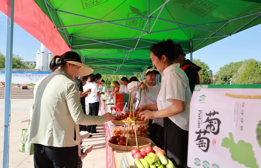 沃土千重绿,生态瓜果香。6月24日上午,金塔县航天广场热闹非凡,生态健康农产品展示暨现场品鉴推介活动隆重举行,现场群众尽情品尝新鲜番茄、西瓜、甜瓜,一批生产企业喜获“健康金塔”县域农产品公用品牌,一批生态健康农产品生产基地、直营店、体验店获得授牌。